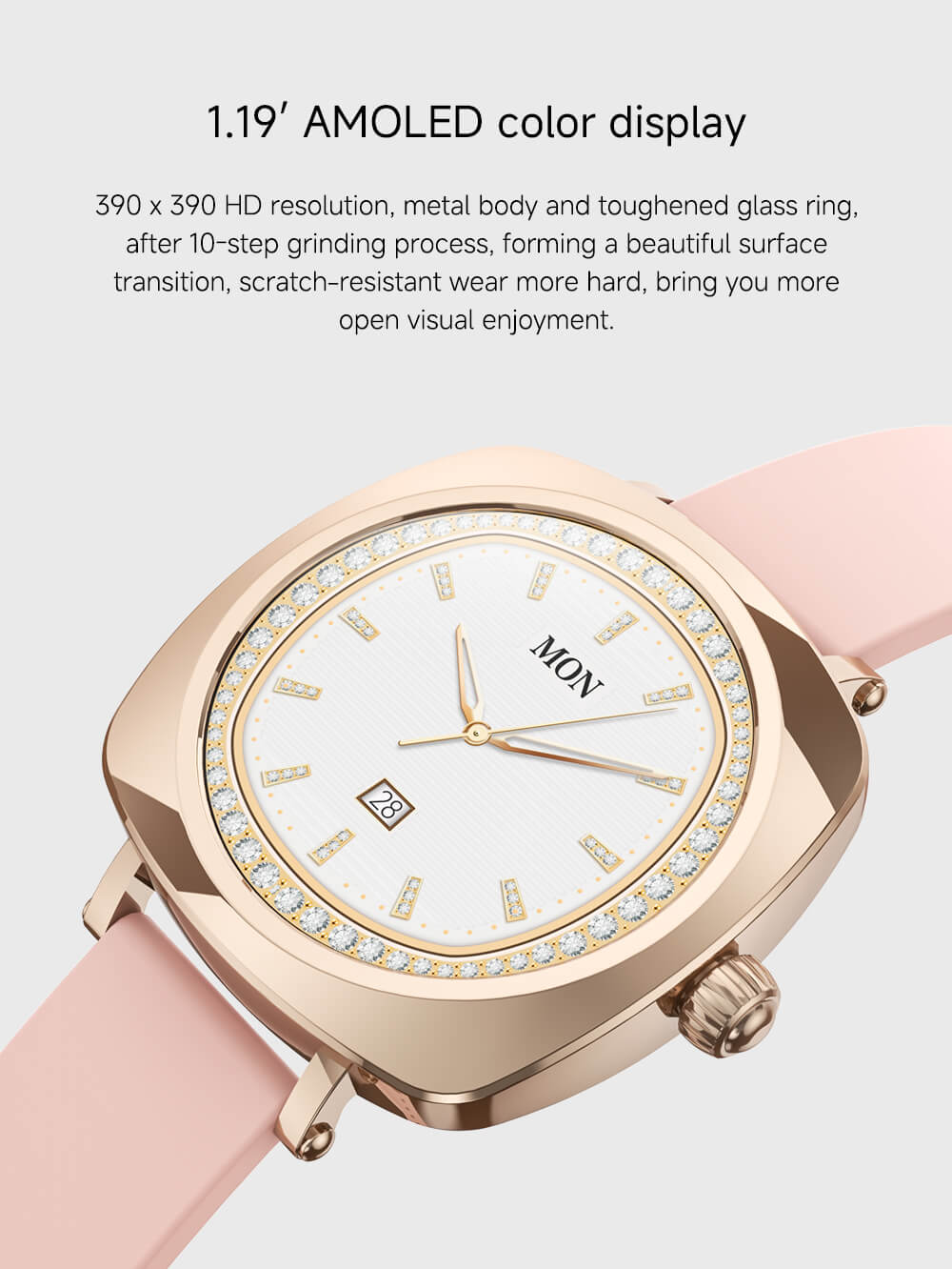 - Display: 1.19 inch Amoled screen